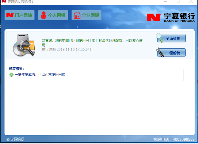 第二步:運(yùn)行寧夏銀行網(wǎng)銀助手,啟動(dòng)全面檢測(cè)